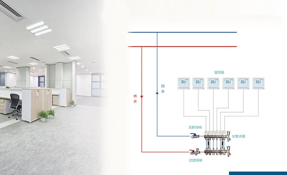 這套系統比較適用于對溫度要求精準的別墅、公寓、寫字樓、住宅等。分集水器上每個控制閥加裝電熱執行器,再由各個區域的溫控器控制,極大程度滿足個性化需求,按需、時智能配置每個房間的溫度,房間獨立恒溫、舒適節能。