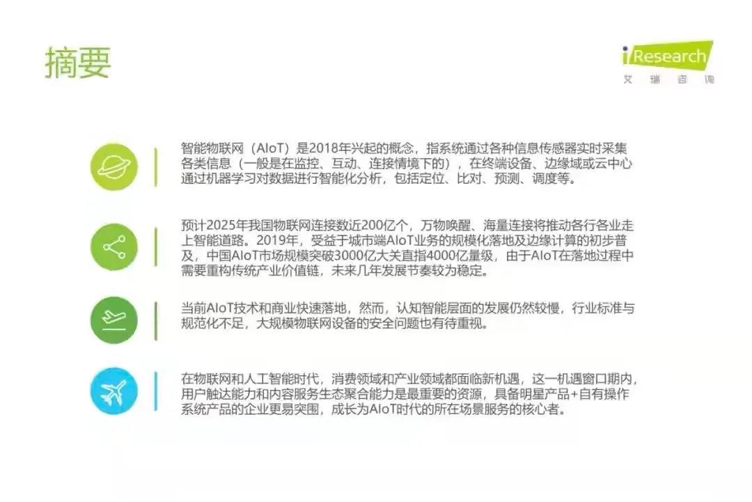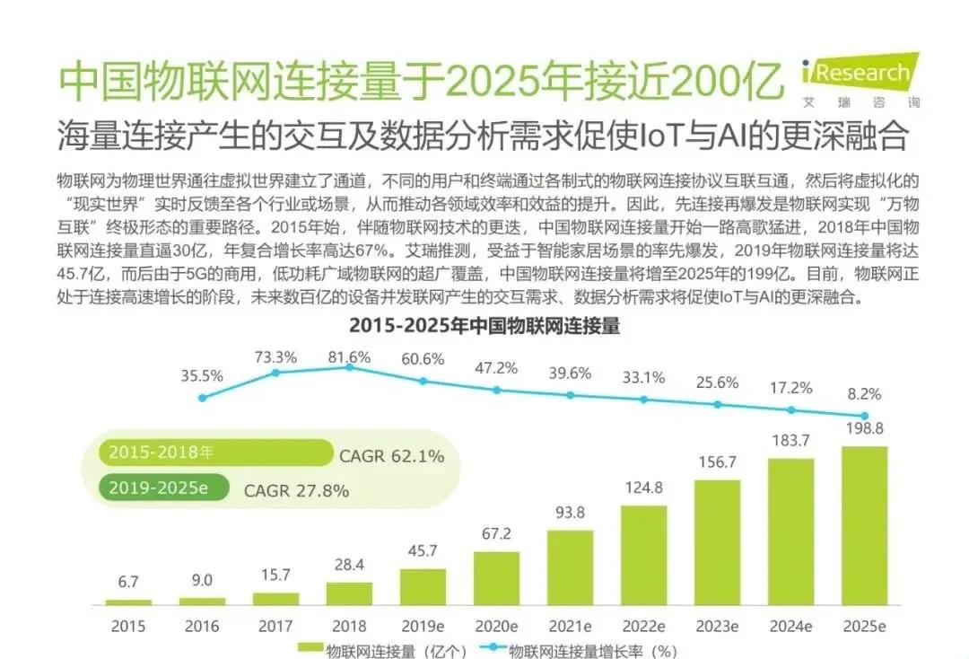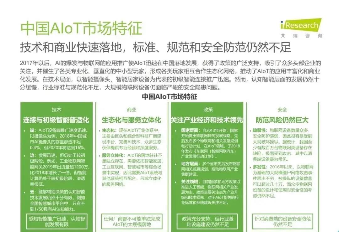白皮書顯示,預(yù)計(jì)2025年我國物聯(lián)網(wǎng)連接數(shù)近200億個(gè),萬物喚醒、海量連接將推動(dòng)各行各業(yè)走上智能道路。2019年,受益于城市端AIoT業(yè)務(wù)的規(guī)模化落地及邊緣計(jì)算的初步普及,中國AIoT市場規(guī)模突破3000億大關(guān)直指4000億量級(jí),由于AIoT在落地過程中需要重構(gòu)傳統(tǒng)產(chǎn)業(yè)價(jià)值鏈,未來幾年發(fā)展節(jié)奏較為穩(wěn)定。當(dāng)前AIoT技術(shù)和商業(yè)快速落地,然而,認(rèn)知智能層面的發(fā)展仍然較慢,行業(yè)標(biāo)準(zhǔn)與規(guī)范化不足,大規(guī)模物聯(lián)網(wǎng)設(shè)備的安全問題也有待重視。