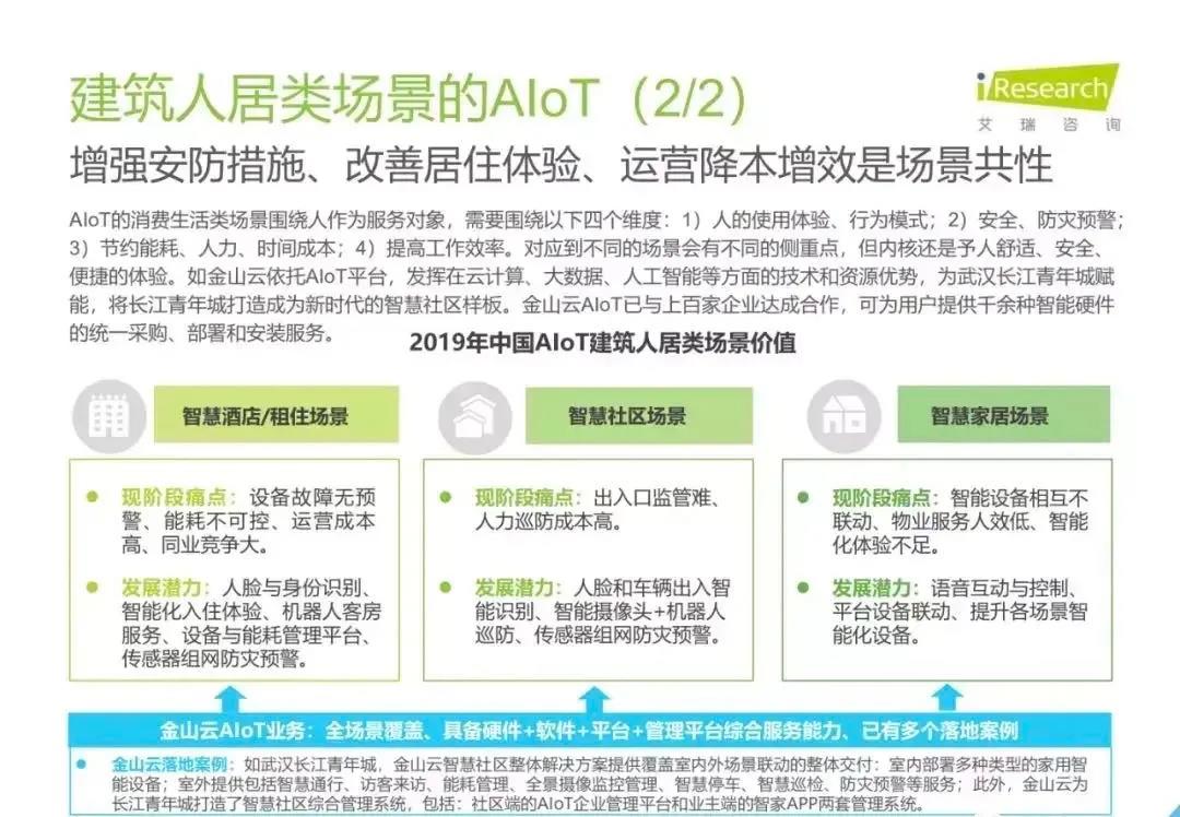 近日,艾瑞咨詢與金山云聯(lián)合發(fā)布《2020年中國智能物聯(lián)網(wǎng)(AIoT)白皮書》。白皮書對(duì)未來AIoT的應(yīng)用愿景進(jìn)行了描繪,對(duì)行業(yè)應(yīng)用場景及發(fā)展空間進(jìn)行了分析,旨在將向市場提供更多的參考依據(jù)。