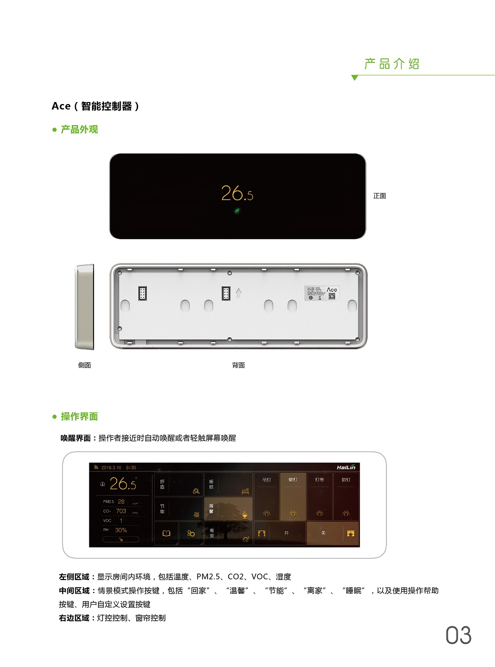 ACE將溫度控制、燈光控制、窗簾控制、新風(fēng)控制、空氣檢測集于一身,采用控制模塊集中控制,控制面板弱電連接方式,極大程度減少布線及人工成本。ACE+自學(xué)習(xí),不斷優(yōu)化用戶使用習(xí)慣,減少生活浪費,ACE就是您身邊的隱形管家。